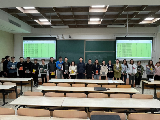 经过30分钟的认真作答,参赛同志都提交了自己的试卷。微电子本科二支部支委通过整理“微助教”后台成绩数据,评定出一等奖2名,二等奖5名,三等奖26名。随后,支部书记李伟同志和黄佛保同志为获奖同志颁发奖品并合影留念。