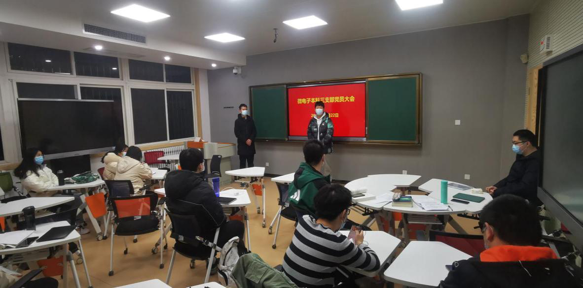 为了加强学院基层党组织建设,落实党支部发展党员工作计划,培养优秀学生党员,微电子学院本科三支部于2021年12月22日晚,在长安校区教学东楼JB107召开接收预备党员与预备党员转正大会,支部全体党员、预备党员与发展对象参加,会议由支部书记黄佛保老师主持。