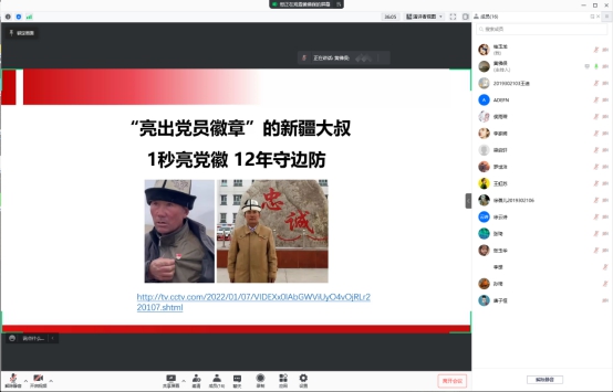 活动期间以“亮出党徽的新疆大叔,十二年守边防”的事例展开学习,让支部的党员同志都充分意识到党员的使命与担当。