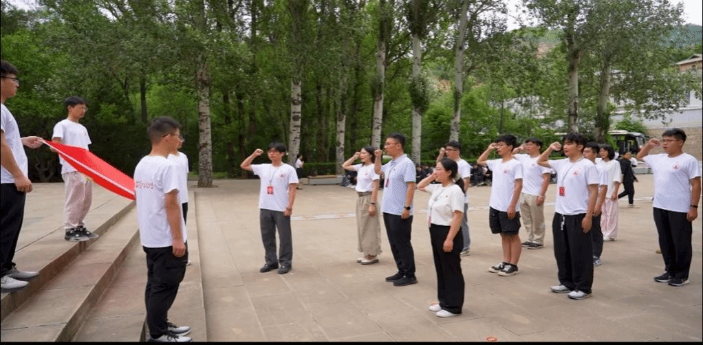 在枣园革命旧址的张思德雕塑下,师生们置身庄严肃穆的氛围中,集体诵读《为人民服务》,在红色经典的字里行间汲取初心力量。随后,全体党员师生举行了庄严的重温入党誓词仪式,字字铿锵,信念如磐。