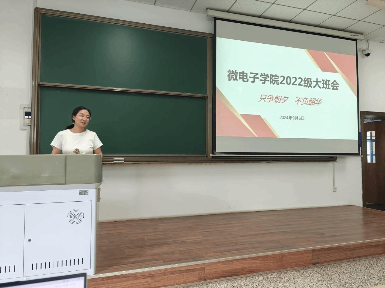 2024年9月6日,微电子学院召开2022级本科大班会暨“开学集体大预习”,交流大三阶段学业和科研规划,就重点课程进行大预习。学院党委副书记余鹏、21级本科优秀学生代表及全体22级本科生参会,会议由辅导员李媛婷主持。