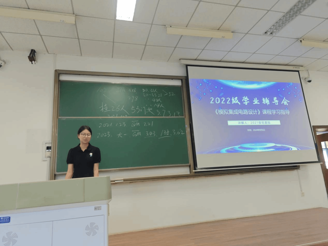 钮嘉陆主要分享对《模拟集成电路设计》的见解。模集作为微电子专业的重要专业课之一,课程的学习深度和理解难度都相较于大二的专业基础课更甚,因此学好该门课重在理解,切忌死记硬背公式和电路。钮嘉陆总结了学习重点和难点,为22级同学们更好掌握该门课程提供了明确指导。
