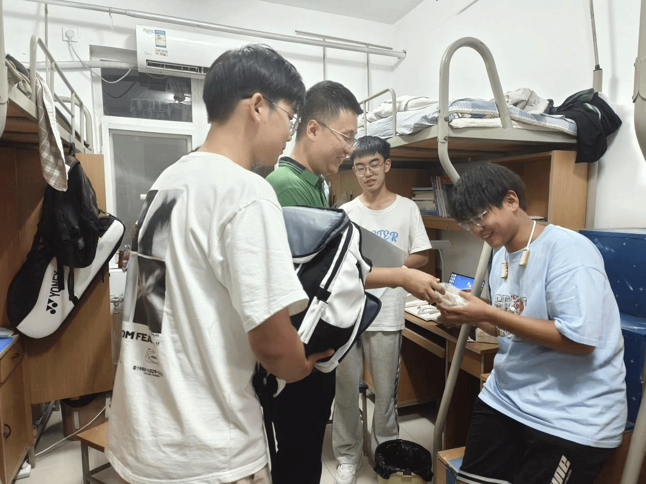 走访慰问中,老师们将月饼发放给同学们,每到一个宿舍,和大家亲切交谈,鼓励同学们充分利用即将来临的中秋节假期,劳逸结合,熟悉校园环境,尽快适应大学生活。余鹏叮嘱同学们,要注意宿舍用电、用水和个人人身财产安全,不爬野山,谨防诈骗,度过一个安全温馨的中秋假期。
