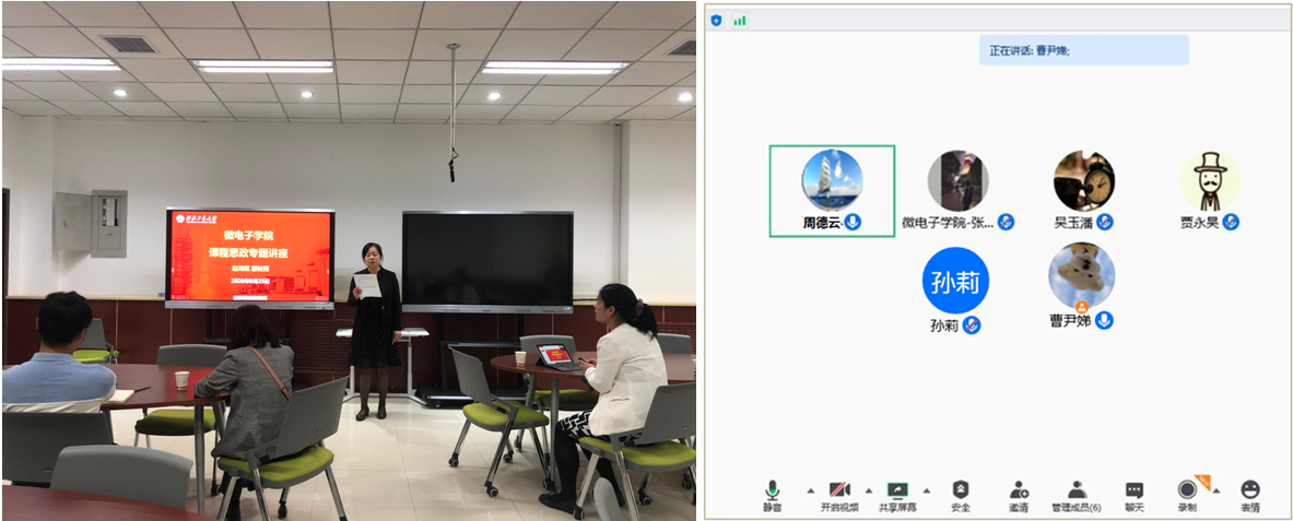 2020年9月25日上午10点,微电子学院邀请马克思主义学院赵海霞副教授来我院举办“课程思政”专题讲座。讲座采取线上线下相结合的形式。院长周德云、副书记彭蓉出席了讲座。讲座由副书记彭蓉主持。
