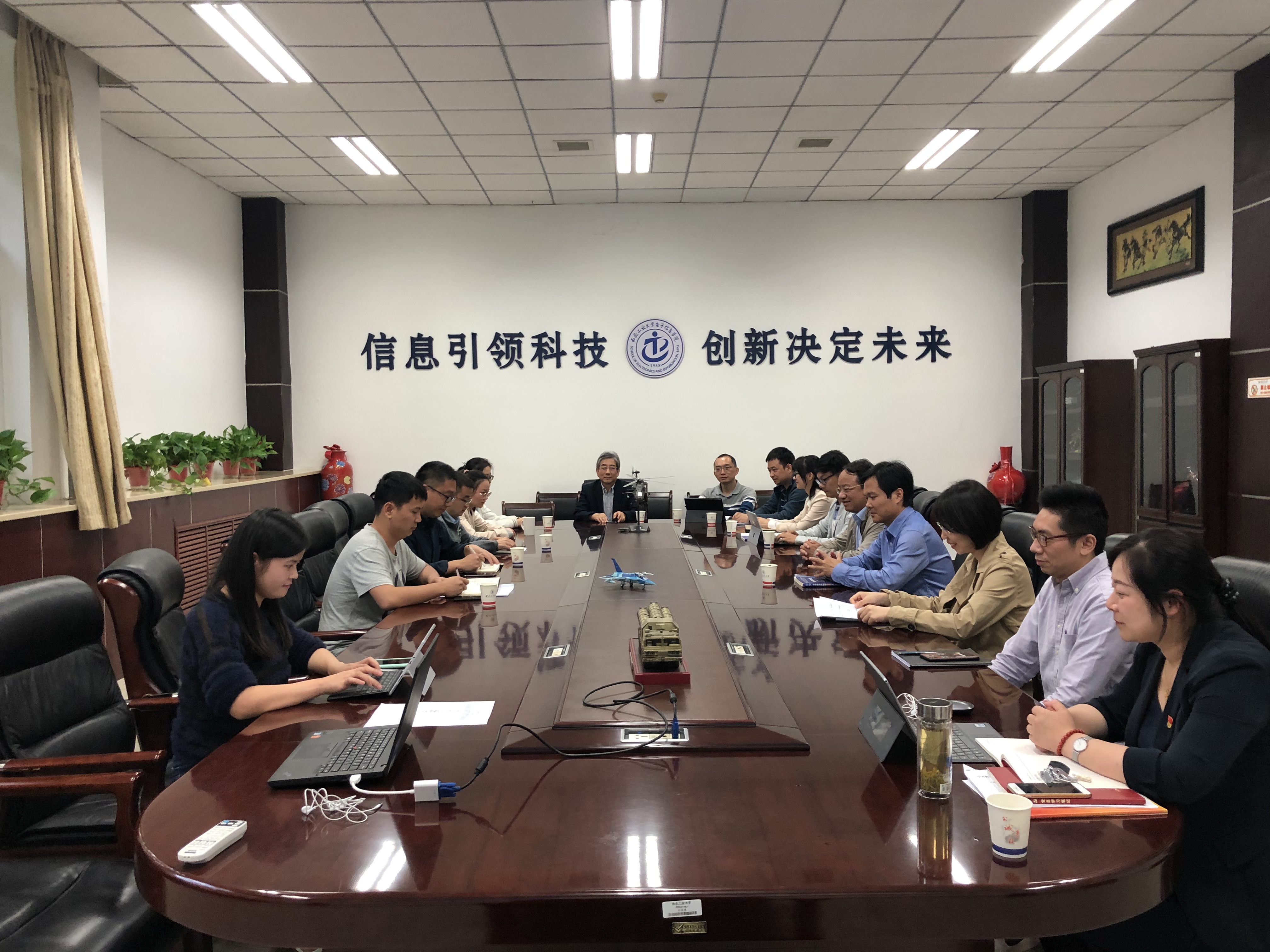2020年9月23日16:00,微电子学院召开人才培养大讨论和课程思政建设研讨会,院长周德云、副院长王少熙、副书记彭蓉出席会议。会议由副院长王少熙主持。为使学院全体教师充分参与研讨,本次会议采取线上线下相结合的形式,西安校区教师在电子信息学院楼159会议室线下参与研讨,太仓校区教师通过腾讯会议平台线上参会。