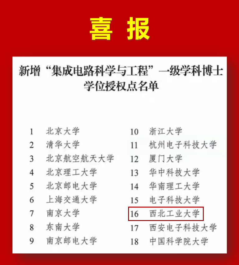 日前,国务院学位委员会公布全国首批“集成电路科学与工程”一级学科博士学位授权点名单,我院申报的“集成电路科学与工程”一级学科博士学位授权点获批。因为是全国首批,“集成电路科学与工程”一级学科的申报竞争非常激烈。从官方公布名单看,共有18所高校获得了国家的认可,他们将承担集成电路领域高端人才培养和科学研究的重大使命,为破解“卡脖子”难题作贡献。