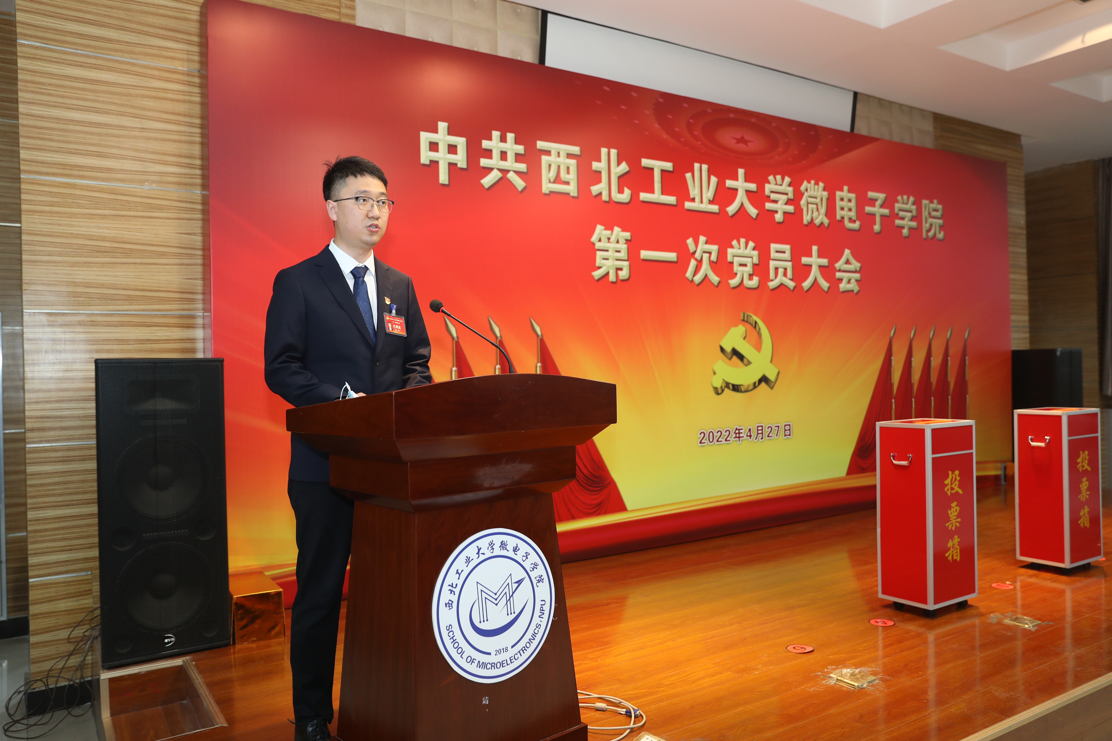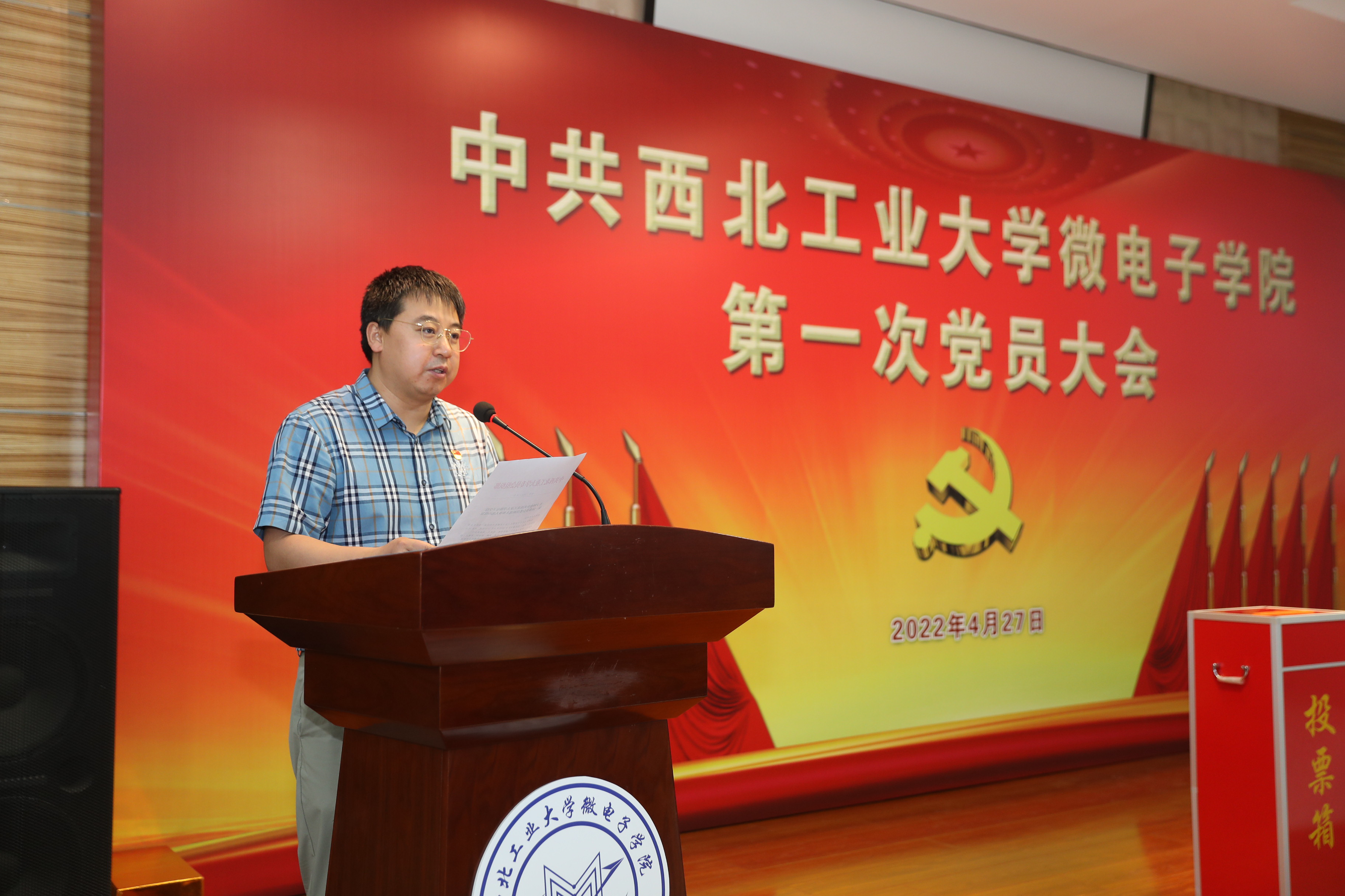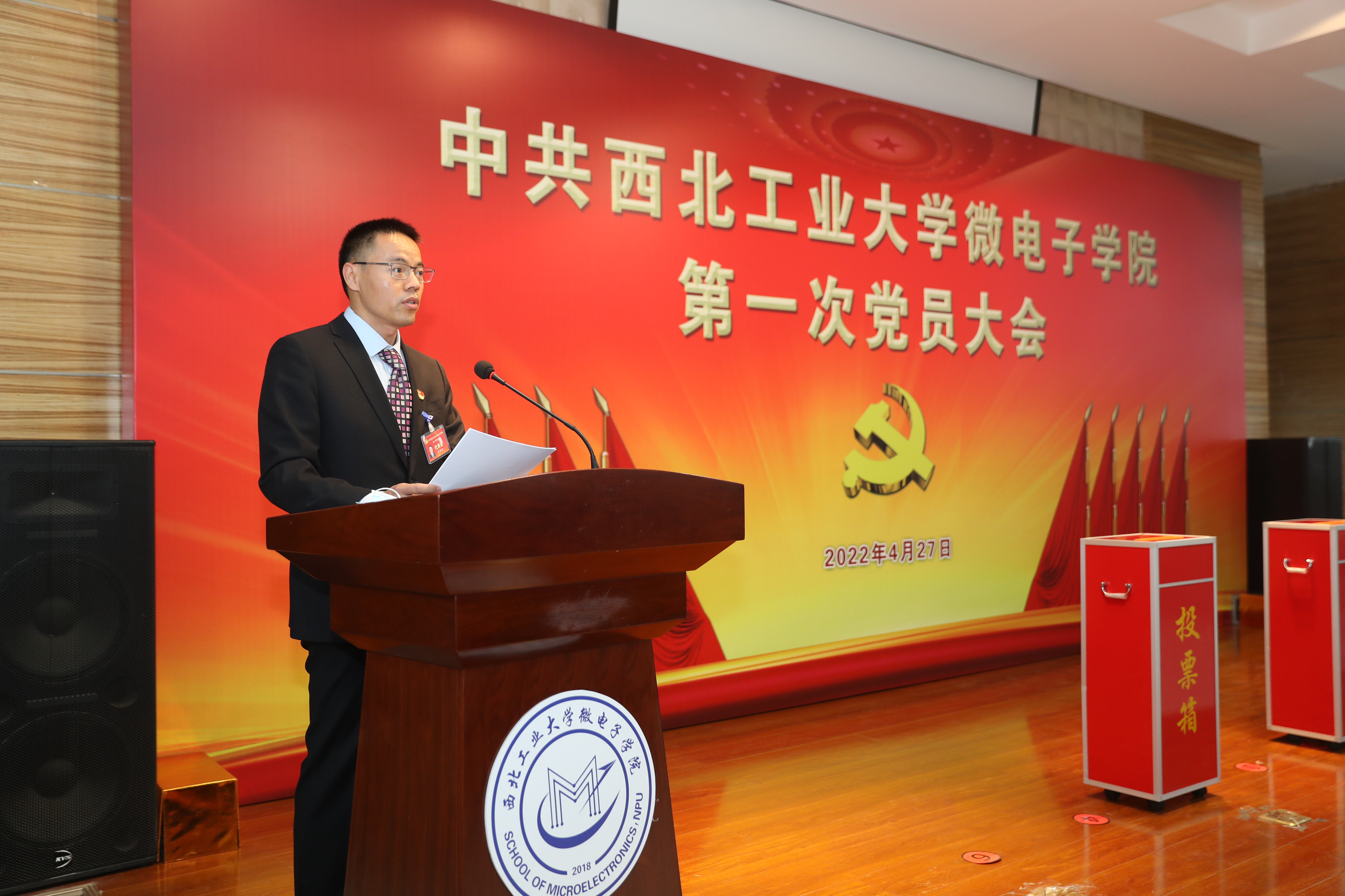 甘雪涛同志代表微电子学院党委筹备工作组作了题为“落实立德树人根本任务,全面开启建设一流学科、一流专业、示范性微电子学院新征程”的党委工作报告。报告回顾了微电子学院自建立以来在学校党委的正确领导下,在全院师生的共同努力下,各项工作取得的优异成绩,及所呈现出的蓬勃发展良好局面。同时,在充分肯定成绩的同时,也清醒地看到学院发展中的问题和不足、困难和挑战。进而有针对性地提出学院未来五年发展的目标及举措。报告指出,未来要继续不忘初心、牢记使命,凝心聚力,奋发图强,为建设一流微电子学院而不懈努力,为把学校早日建成世界一流大学而做出新的更大的贡献!