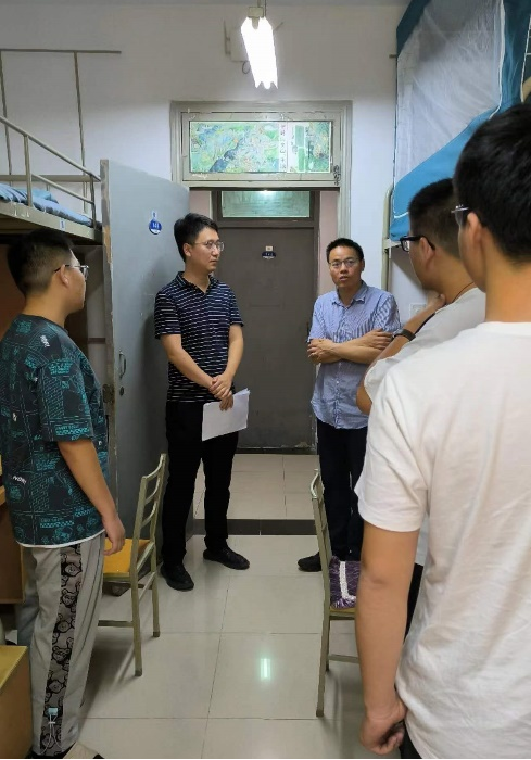 学院老师深入每个新生宿舍,交流入学和入校感受,询问实际困难和需求,征求意见建议,同时对新生们提出了殷切希望和具体要求。甘雪涛书记向同学们分享了自己的大学时光和切身感悟,指出同学们要及时树立远大理想和大学目标,瞄准定位、打好基础、努力深造,时刻保持学习、生活良好规律,共同营造积极向上的班风、舍风,一起提高进步。