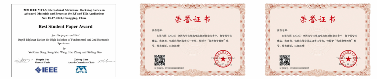 在人才培养方面,张浩老师主讲了《射频集成电路设计》与《集成电路版图设计》等课程,同时以赛促教,指导本科生获国际学术会议最佳学生论文奖、集创赛西北赛区一等奖,指导本科毕设15人,4人获优秀毕业生荣誉称号,指导硕士生4人,2人获优秀研究生荣誉称号。在日常的教书育人过程中,张浩老师能够对参加科研项目的学生开展爱国主义、学术诚信和集体主义教育,在价值取向、学术导向、科技创新等方面言传身教、以身作则,积极弘扬科学家精神,培养学生的责任担当和严谨求实的科研作风。深入贯彻学校“顶天、立地、育人”的科研工作理念。
