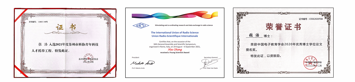 张浩老师的主要研究方向为空间全方位微波能信传输系统及其控制方法,近三年来,在科研项目方面,主持国家自然科学基金项目1项,省部级项目2项,国家重点实验室开放课题1项;在科研成果方面,以西工大为第一单位,本人为第一/通讯作者发表SCI期刊论文5篇,一类国际会议论文2篇,授权发明专利4项;同时还获得由URSI GASS、IEEE MTT-S等认证的国际无线电科学联盟青年科学家奖、亚太微波会议(APMC)旅行资助奖等等多种奖项。