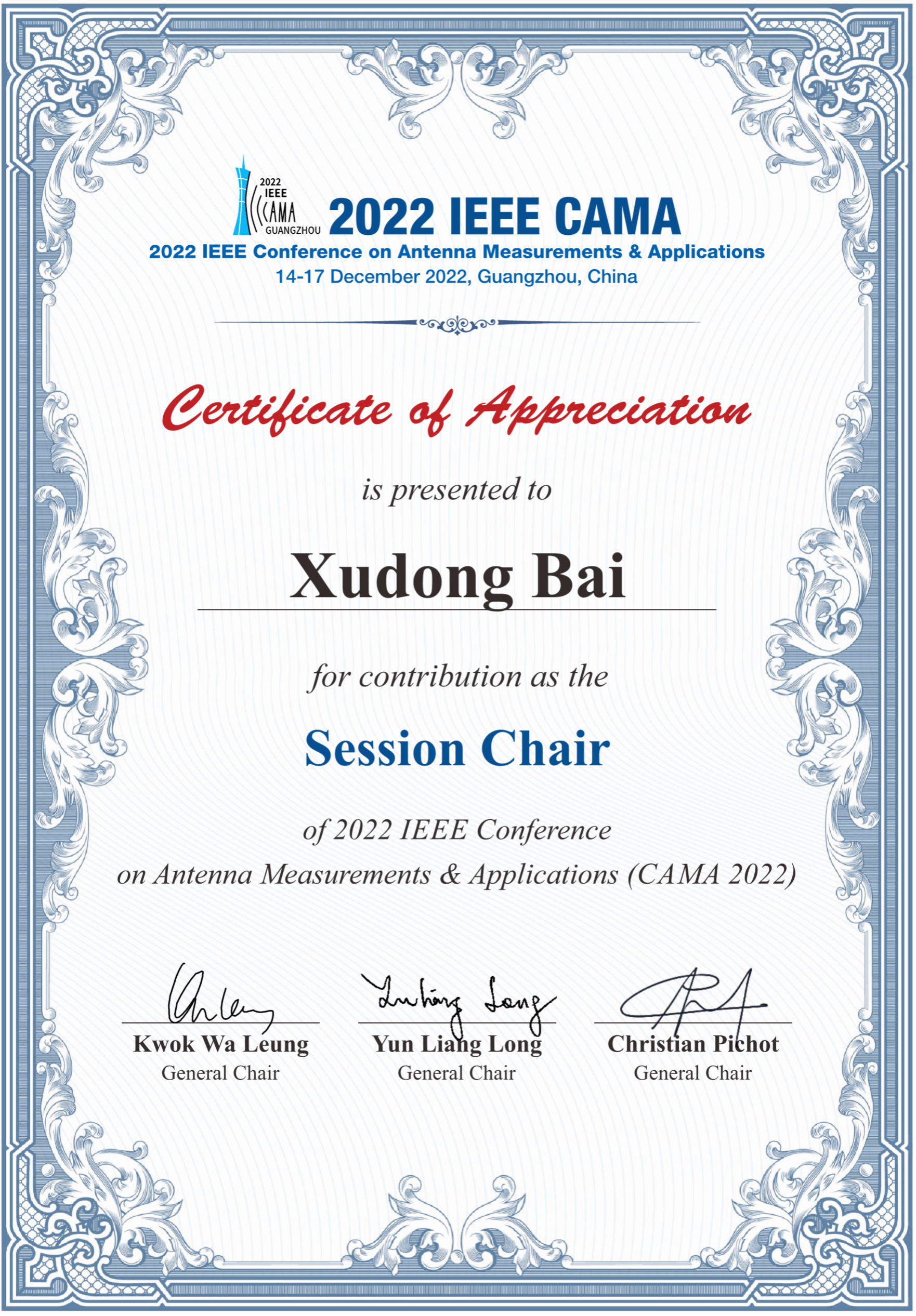 白旭东老师除日常的科研工作外,还积极参与各类公共服务工作,在2022 IEEE Conference on Antenna Measurement & Application (2022 IEEE CAMA)上担任了分会场Reconfigurable Metamaterials / Metasurfaces and Applications主席,并做了题为《Dynamic Beam-Scanning Through Radiation-Type Programmable Metasurface》的学术报告。同时,积极参与学院的各类项目申报、人才引进、招生等各项工作。