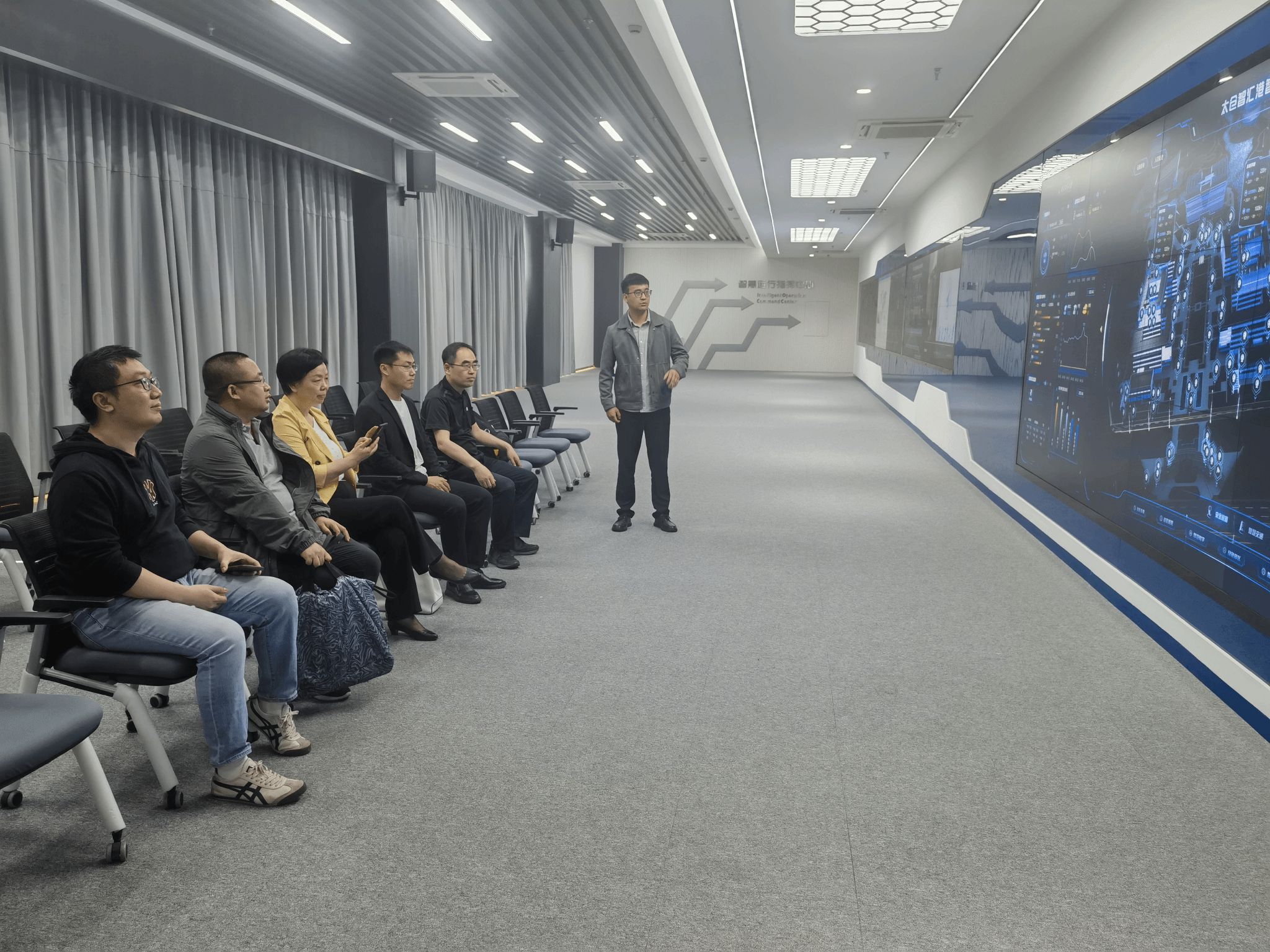 在学院院长助理张浩陪同下,中电科瑞测(西安)科技服务有限公司一行游览太仓智汇港,参观太仓智汇港456展览室、太仓智汇港IOCC展览室、太仓市娄江新城规划展示馆等。随后,甘雪涛陪同参观微电子学院在太仓智汇港的办公区、实验室、学生研修室等。