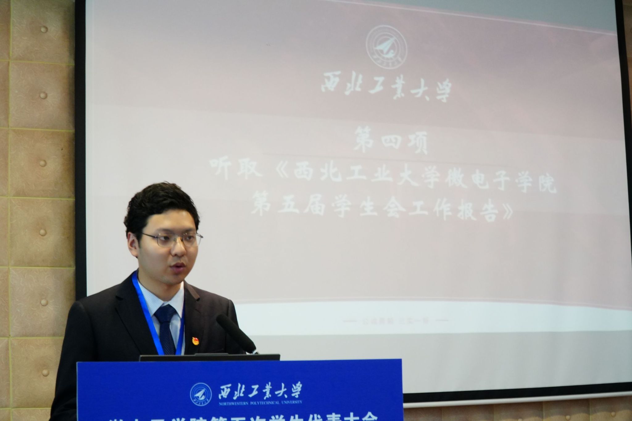 微电子学院第五次学生代表大会暨第四次研究生代表大会正式拉开序幕。校学生会主席团成员肖宇航致辞,肖宇航分享了自己在校学生会的工作经验,希望同学们能够筑牢青春根基、书写人生华章,强调学生会应全心全意服务同学,并衷心祝愿本次会议顺利召开。随后,校研究生会主席团成员王雅妮发言。王雅妮提到三个“聚焦”——聚焦政治引领、聚焦形神兼备、聚焦主责主业,呼吁同学们团结在党的周围,发扬总师育人文化。