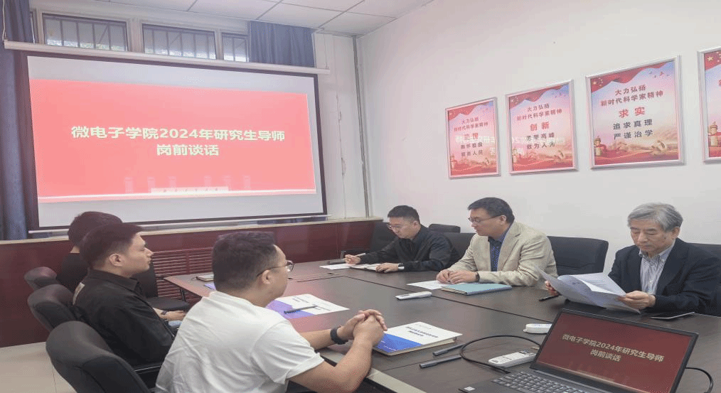 研究生导师岗前谈话工作办法》文件要求,微电子学院于10月17日上午召开了2024年度新认定研究生导师岗前谈话工作会议。院长马炳和、党委副书记余鹏、魏廷存教授以及新认定的3位导师参加了会议,会议由院长马炳和主持。