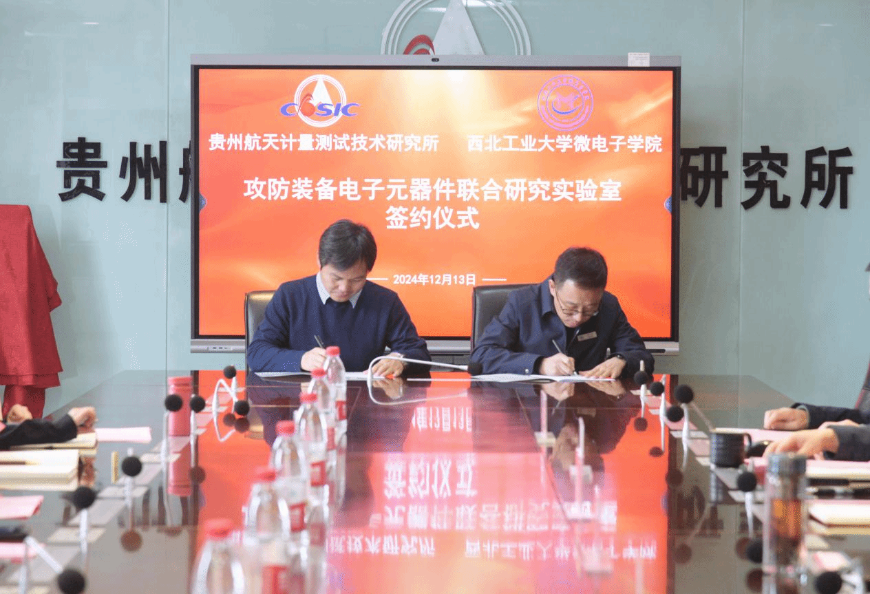 12月13日,微电子学院与贵州航天测试研究所联合共建攻防装备电子元器件联合研究实验室正式签约揭牌。航天测试党委副书记、常务副所长李晓强出席。航天测试科技发展处、科技委办、人力资源处、三室等有关负责同志、微电子学院副院长王少熙、学院办公室主任景省利及相关老师参加本次会议。会议由航天测试科技发展处处长聂祥松主持。