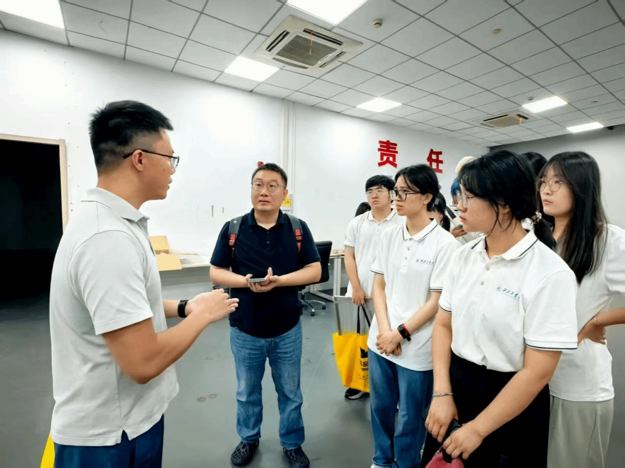 实践队伍首先参观了纳米压印技术车间,对这一前沿创新技术进行深入学习。纳米压印技术是前沿科技研究成果落地转化的生动案例,这让同学们对科学研究转化为生产动力有了更深刻的认识。在相关人员的带领下,小队还参观了其他量子芯片相关知识与装置,这使得大家充分体会到微电子专业与物理、数学等学科的交叉融合在实际应用中的体现。