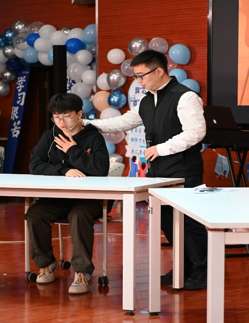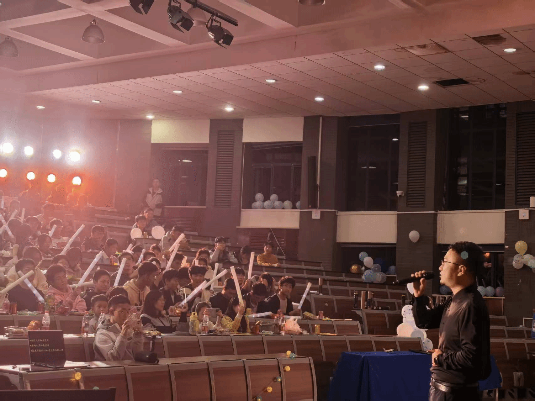 晚会前,马炳和院长通过视频送来寄语与祝福,真挚的话语深深感染了在场每一位师生。现场节目精彩纷呈,HighCold 乐队表演瞬间点燃全场热情,青春活力尽情释放。随后的歌曲演唱中,同学们用歌声串联起青春记忆,悠扬旋律沁人心脾。《咆哮》独舞展现青春张力,《青春不眠》舞蹈串烧活力四射,乐器合奏动人心弦,由辅导员王一星出演的《寻心》情景剧更是引发全场情感共鸣,成为晚会亮点。抽奖环节气氛热烈,为晚会增添难忘回忆。