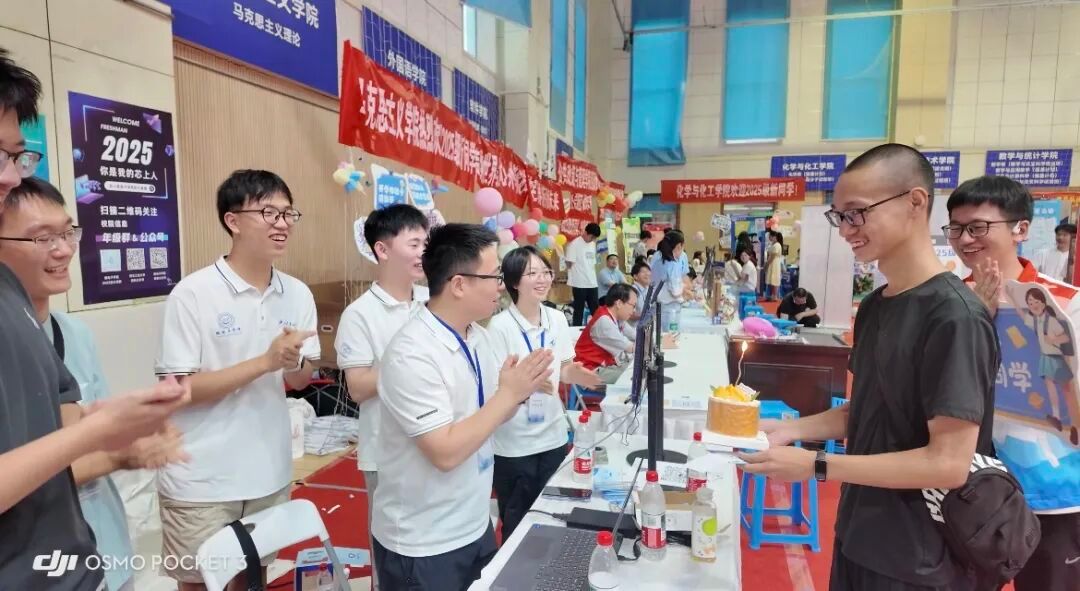 长安校区的翱翔体育馆外,学院志愿者们各司其职,井然有序地进行迎新工作,耐心为新生指引方向,协助完成入学签到手续;内场迎新工作人员细心核对新生信息,确保细节准确无误,为新生发放帆布包等迎新礼物。学院精心筹备了易拉宝、拍照框等物料,将微电子学院的学科优势与人文底蕴融入其中,新生依次驻足留影,镜头捕捉下的不仅是与学院的初次邂逅,更是一段青春与理想的郑重对话。工作人员还为当日过生日的新生准备了惊喜,共同庆生将迎新活动的热烈氛围推向高潮。